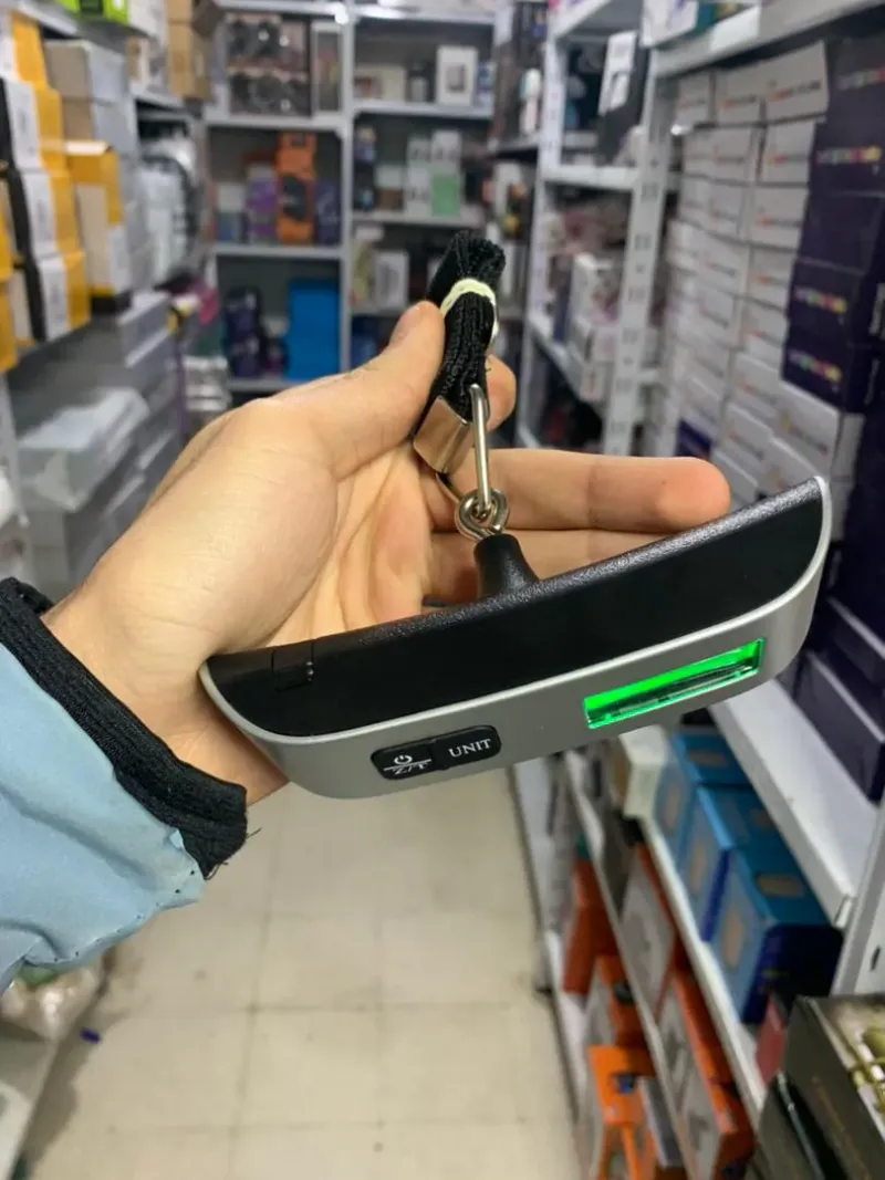 Balance à bagages numérique portable 50kg avec écran LCD – Précise, compacte et facile à transporter Pesez vos bagages facilement avec cette balance numérique portable jusqu’à 50 kg. Écran LCD clair, précision maximale, compacte et légère, idéale pour les voyages et déplacements. balance à bagages numérique balance portable 50kg balance avec écran LCD balance précise pour voyage accessoire bagages balance légère compacte قم بقياس وزن حقائبك بسهولة مع الميزان الرقمي المحمول حتى 50 كغ. شاشة LCD واضحة، دقة عالية، خفيف الوزن ومثالي للسفر والتنقل. مُستشعر مقياس عالي الدقة ومصنوع من مواد عالية الجودة يتحمل وزن يصل الى 50 كغم اضغط على الزر لمدة 2 ثانية لإيقاف التشغيل او التشغيل يعمل من خلال البطاريات يُمكنك تبديل وحدات القياس من خلال الضغط على زر Z / T بطارية ليثيوم / 3 فولت ميزان رقمي لحقائب السفر خطاف معدني قوي حزام للتعليق بطارية صغيرة طول الميزان الرقمي: 13 سم العرض : 3 سم الارتفاع : 4.4 سم طول حزام التعليق : 22 سم مصنوع من الفولاذ المقاوم للصدأ والبلاستيك ميزان حقائب رقمي ميزان محمول 50 كغ ميزان بشاشة LCD ميزان دقيق للسفر ميزان خفيف وسهل الحمل أدوات السفر