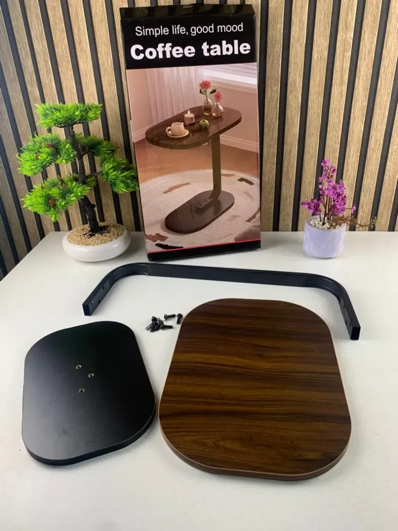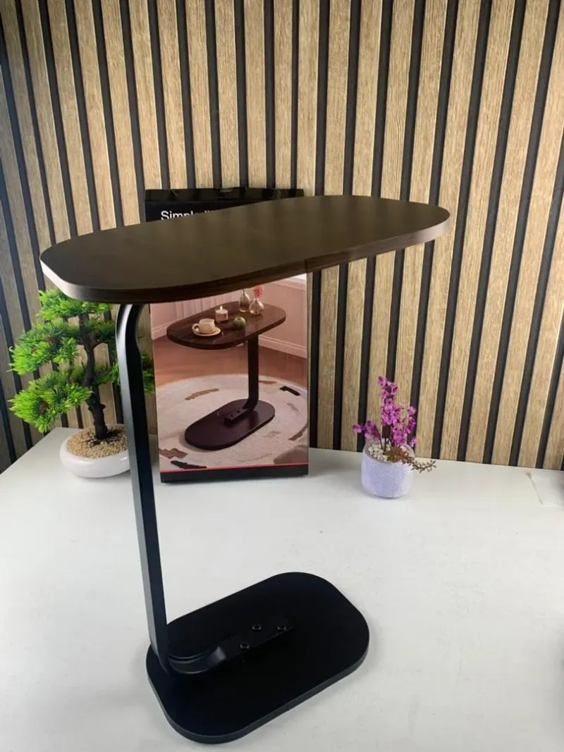 Table d’appoint en bois en forme de C – Idéale pour petits espaces, pratique et design moderne