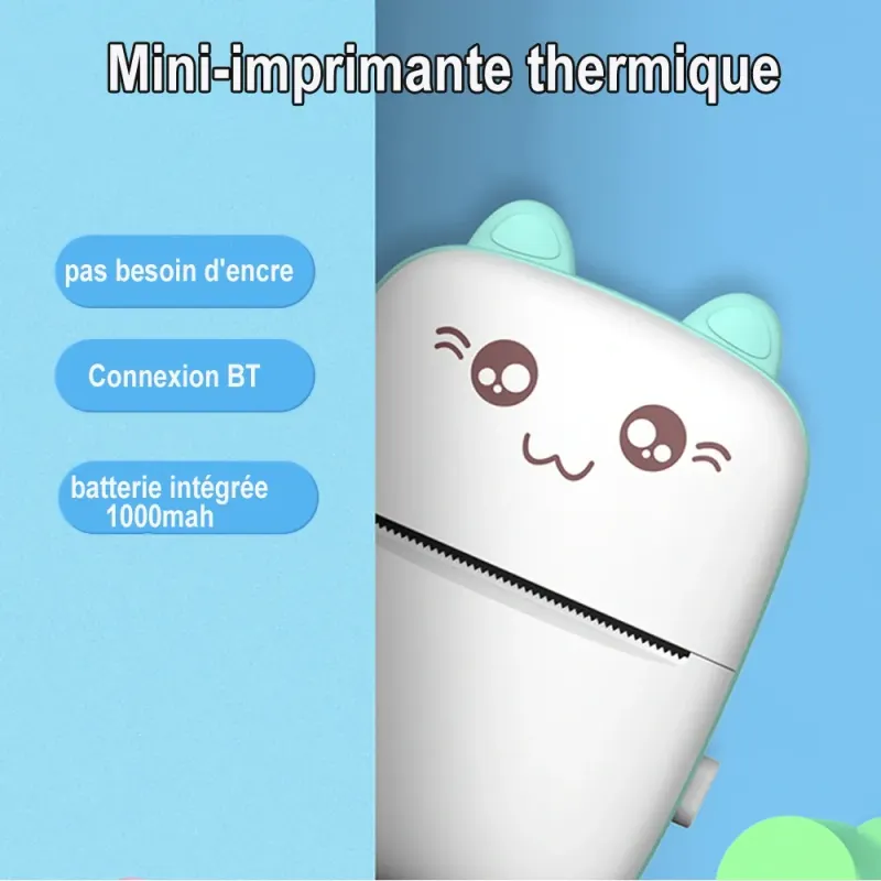 ملخص المواصفات والميزات لطابعة "Funprint": المواصفات: الألوان: وردي، أزرق نوع الورق: حراري الاتصال: بلوتوث 4.0 / USB البطارية: قابلة لإعادة الشحن (1000 مللي أمبير/ساعة) دقة الطباعة: 200 نقطة لكل بوصة (dpi) أبعاد الطابعة: 144 x 134 x 55 ملم وزن الطابعة: 250 جرام الميزات: طباعة صور، ملصقات، رسائل، أكواد QR، وقوائم. دعم مجموعة متنوعة من الخطوط والموضوعات من خلال التطبيق. تعمل بدون حبر بتكلفة تشغيل منخفضة. تصميم خفيف الوزن وسهل الحمل. محتويات العبوة: طابعة واحدة لفة ورق واحدة كابل USB دليل المستخدم Résumé des spécifications et caractéristiques de l'imprimante "Funprint" : Spécifications : Couleurs : Rose, Bleu Type de papier : Thermique Connexion : Bluetooth 4.0 / USB Batterie : Rechargeable (1000 mAh) Résolution d'impression : 200 DPI Dimensions : 144 x 134 x 55 mm Poids : 250 g Caractéristiques : Impression de photos, étiquettes, messages, QR codes, et listes. Application avec différentes polices et thèmes. Fonctionne sans encre, faible coût d'utilisation. Design compact et léger, facile à transporter. Contenu du paquet : 1 imprimante 1 rouleau de papier 1 câble USB 1 manuel d'utilisation