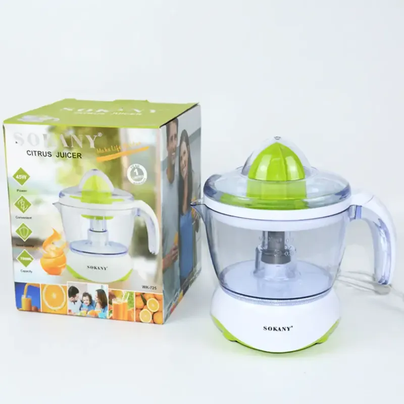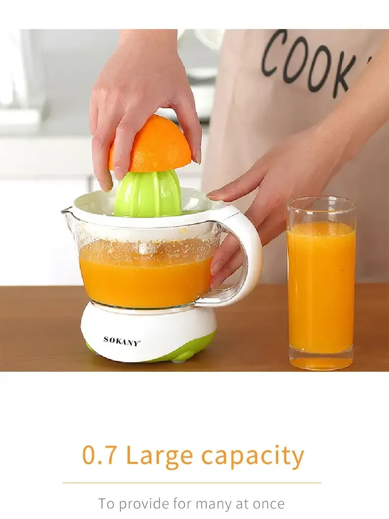 Cône auto-inversé: vous assure d’obtenir le plus de jus en changeant de direction à chaque pression. Nettoyage facile: toutes les pièces amovibles passent au lave-vaisselle pour un nettoyage facile. Marquage d’échelle Transparent: prise de mesure pour une utilisation précise dans les recettes et les boissons mélangées. Grande capacité: 700ml de jus pour les besoins du corps humain après la vitamine C. Spécifications: Matériau: plastique ABS Couleur: vert Capacité: 700ml Consommation électrique: 45W Alimentation: 220-240V Fréquence: 50/60Hz Emballage inclus: 1 x presse-agrumes électrique 1 x adaptateur
